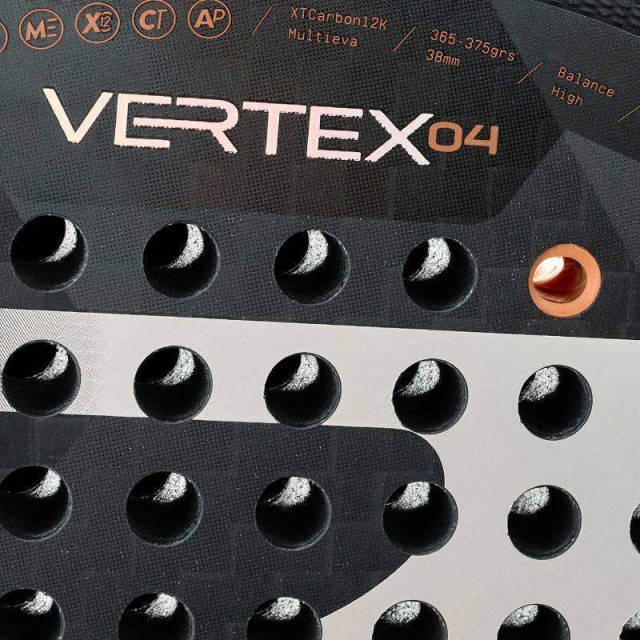 1. Forma Diamante y Balance Alto: La Vertex 04 2025 presenta una forma de diamante que proporciona maxima potencia, ideal para aquellos que buscan remates potentes y una salida de bola impresionante.